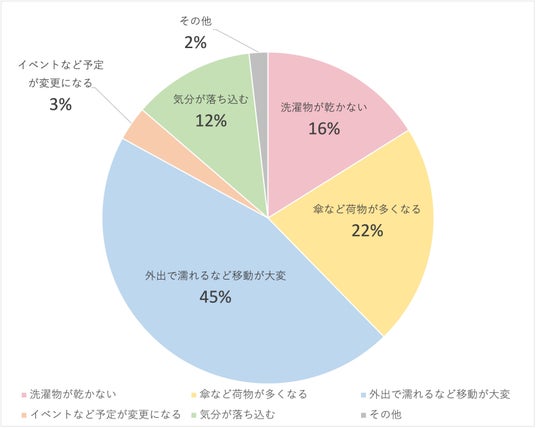 最も多い回答は「外出で濡れるなど移動が大変」という内容であった。