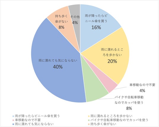 また、雨が降ったら買えばいいや、雨に濡れるところを歩かないなどの回答も見られました。