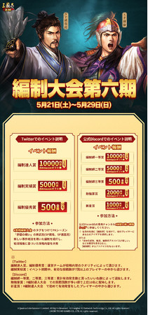 新シーズン「赤壁の戦い」の開始に合わせて開催する今回の編制大会は、2022年5月21日(土)から5月29日(日)まで、いつものようにTwitterと本作の公式Discord両方で実施いたします。参加方法はそれぞれ異なりますので、どうぞ以下の画像で詳細をご確認ください。