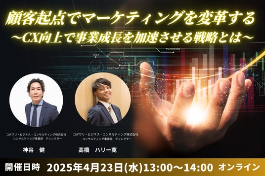 コダワリ・ビジネス・コンサルティング株式会社(本社:東京都中央区、代表:大谷内 隆輔)は、2025年4月23日(水)に、顧客起点のマーケティング戦略を策定し成果を上げる方法について、成功事例を交えて解説するウェビナーを開催いたします。
