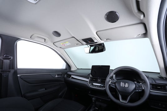 5cmルーフスピーカーを頭に近い天井に装着。目の前上方からサウンドが降り注ぐことで、走行中のロードノイズに負けることのない音楽再生を実現。ドライブ中にありがちな「走っているときに音楽が聴こえない」を解消する聴きやすく快適なサウンドを実現します。