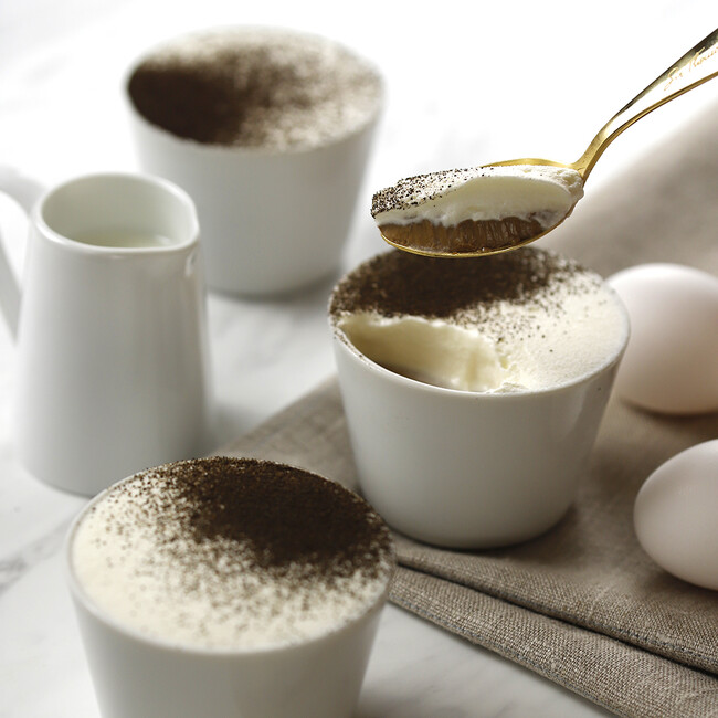 『ロイヤルミルクティプリン』には山盛り一杯分、アッサムの茶葉が使用されています。