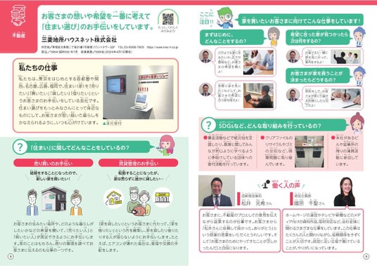 三菱地所グループにおいて不動産売買の仲介、賃貸の仲介・管理を担う三菱地所ハウスネット株式会社(本社所在地:東京都新宿区北新宿2-21-1 取締役社長:平川清士)は、文部科学省が推進するキャリア教育のための副教材2025年度版「小学生のためのお仕事ノート(新宿区版)」、「中学生のためのお仕事ブック(新宿区・杉並区・世田谷区・中野区版)」に協賛しましたことをお知らせします。仲介や管理などの不動産事業について、当社を題材としてわかりやすく紹介されています。