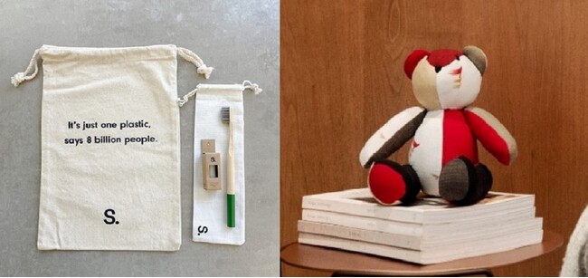最大5000マイルのボーナスマイルやグッズの販売を通してサステナブルな商品を展開するライフスタイルブランドS.(エスドット)とのコラボ企画で、抽選で計10名様にS.オリジナルトラベルグッズとキャセイパシフィックのアップサイクルベアのぬいぐるみをプレゼントいたします。