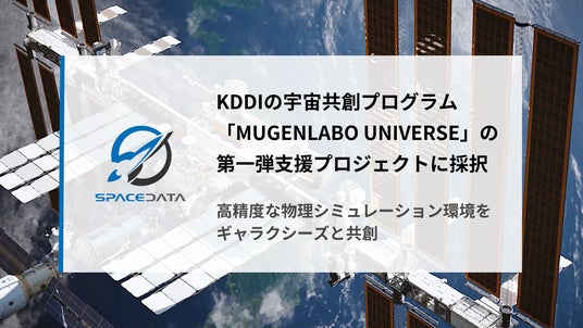 株式会社スペースデータ(本社:東京都渋谷区、代表取締役社長:佐藤航陽、以下 スペースデータ)はKDDI株式会社(本社:東京都千代田区、代表取締役社長 CEO:高橋 誠、以下 KDDI)の宇宙共創プログラム「MUGENLABO UNIVERSE」において、第一弾支援プロジェクト(以下 本プロジェクト)として採択されたことをお知らせします。