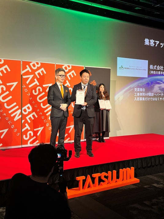 神奈川県を中心に約2万2,000戸の賃貸アパート・マンションの管理・JAパーキングネットの運営を手がけ、 入居率98.7%(※2024年10月末現在)を維持する株式会社ジェイエーアメニティーハウス(本社:神奈川県平塚市、代表取締役社長:小野 忠久)は、2024年11月14日(木)に開催されたリノベーションブランドFC「リノッタ」等の優秀な活用をした企業を表彰する年間最大のイベント【TATSUJIN AWARDS -SWITCH-2024】において、「Renotta年間受注件数 第1位」「PLUSRU年間受注金額 第1位」「集客アップの達人賞」の3部門を受賞いたしました。