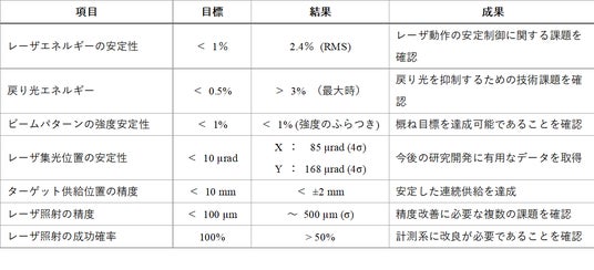 直径1ミリメートルの金属製ターゲットを1秒間に10回の頻度で真空チャンバー内に投入し、ターゲットの位置を予測してレーザを正確に照射しました。1時間にわたる連続照射の結果、レーザの照射位置とターゲットの位置の誤差は約500マイクロメートルに抑えられ、50%以上の確率でターゲットへの照射に成功しました。