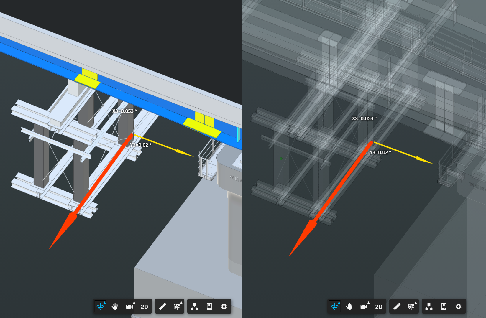 SONAS傾斜計の変位量を確認しやすいようにBIM/CIMモデルや点群は透過できます