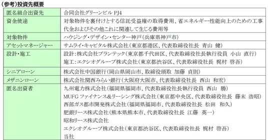 サーラ不動産株式会社(本社:愛知県豊橋市、代表取締役社長 赤間真吾、以下「当社」)は、このたびSBI新生銀行グループの昭和リース株式会社(本社:東京都中央区、代表取締役社長 泰山信介、以下「昭和リース」)が組成するグリーンビル※1開発ファンド「グリーンビルPJ4号」(以下「本ファンド」)に、匿名組合出資を実行いたしましたのでお知らせします。
