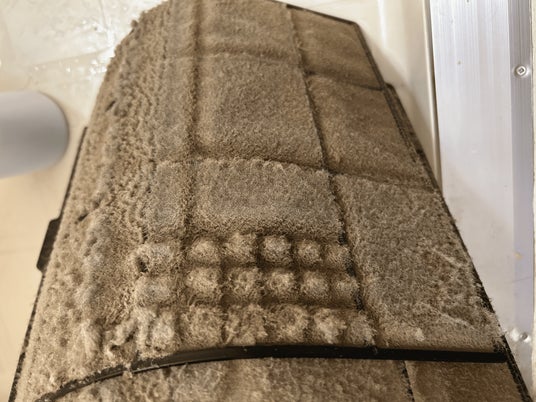BEFORE内部にホコリやヤニ汚れが蓄積し、エアコン使用時ににおいが気になる状態でした。効きも悪く、空気のこもりを感じていました。