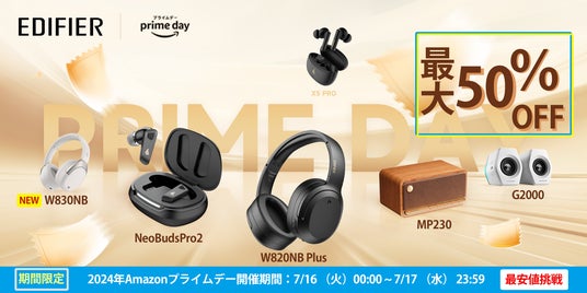 Edifier Japanは、7月16日(火)00:00から7月17日(水)23:59までの2日間限定の「Amazonプライムデー」において、Edifierの注目新作W830NBヘッドセットをはじめ、定番人気製品NeoBudsPro2イヤホン、WH950NBヘッドセットは年中最安値で登場!ぜひお見逃しなく。