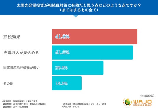 最も多かった回答は「節税効果(41.8%)」と、太陽光発電投資は相続税対策に有効だと感じた人が多い結果となりました。