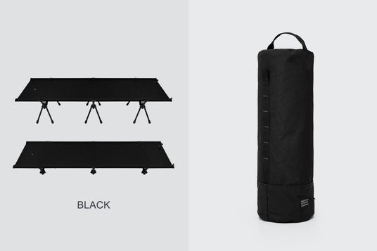 付属のコットレグを使えば2WAYで17cmと37cmの高さの切り替えが出来るので、乗り降りの際の腰の負担を大幅に和らげてくれます。キャンプに限らず災害時等の長期に渡る避難生活でも一台あれば非常に安心。ベンチとして使用するにもベストな高さです。