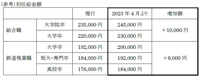 2023年4月より、総合職10,000円、鉄道現業職8,000円引き上げます。