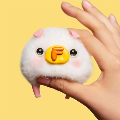 大小様々な願いに合わせて変幻自在に姿を変える、謎のもふもふ生命体「フィットん」。「エッフ♪エッフ♪」と鳴きながら、いろんなところにぴったりハマろうとする習性をもつ。まんまるお目々と、Fのカタチをした大きなお鼻&しっぽがチャームポイント。