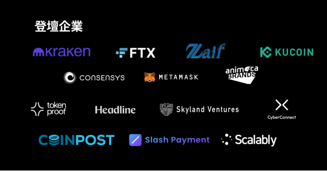 ConsenSys (MetaMask)、FTX、Kraken、KuCoin、Zaif、Animoca Brands、Headline Asia、Skyland Ventures、tookenproof、CyberConnect (LINK3)、Slash Web3 Payment、CoinPost、Scalably、他