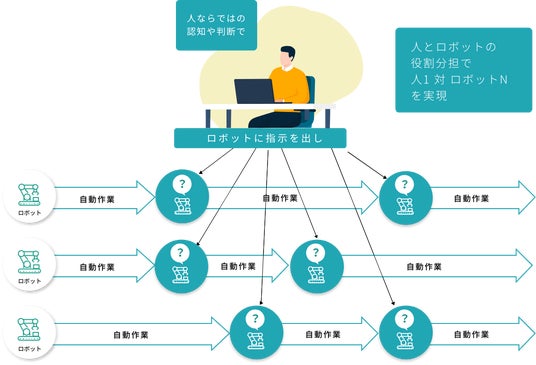 ロボットが得意な繰り返し・重筋作業はロボットに任せ、認識や判断が難しいところを人がリモート操作