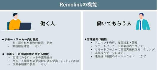 ロボットの遠隔操作だけでなく、アカウント管理や業務アサインなどリモート業務全体を支える機能を持つクラウドサービス