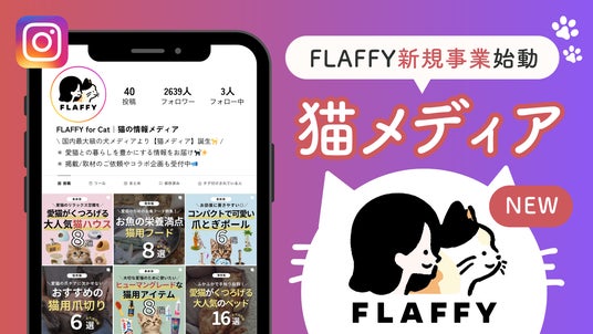 “ペットとヒトの関係をフラットに”をコンセプトに、約15万フォロワーの国内最大級の犬情報メディア事業や人間の服を愛犬の服にリメイクするサービスを複数展開する株式会社FLAFFY(本社:東京都渋谷区、代表取締役:廣田 智沙/以下 当社)は、新規事業として、愛猫との暮らしを豊かにする猫メディア『FLAFFY for Cat』を公式リリースしました。https://www.instagram.com/flaffy.mew/
