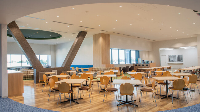 ほかにも、施設内で働く方々の働きやすさに配慮し、カフェテリアには24時間営業のコンビニエンスストアが開業予定で、併設の厨房で調理した出来立て弁当を提供する計画です。無料Wi-Fiと有線放送も導入し、休憩スペースのほか、テレワークに適したテーブル席や貸会議室も備えています。