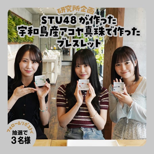 映像第一弾でSTU48・中村舞、兵頭葵、宗雪里香が作った!宇和島名産のアコヤ真珠のブレスレットがもらえるプレゼントキャンペーン