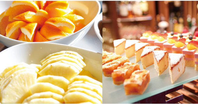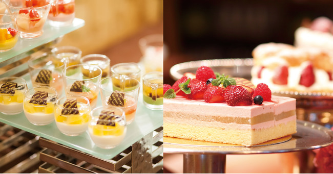 ホテルパティシエが自由な発想でアレンジするメニューには、アップルパイ、ガトーショコラなどの定番スイーツや焼きたてふわっふわっのスフレなど約20 種類のスイーツをセレクト。さらに、大人も思わず笑顔になるチョコレートファウンテンやパティシエが目の前でクレープを仕上げる“ライブキッチン” も登場いたします。ドリンクはコーヒーをはじめ、ティーマスター考案ドイツの老舗紅茶ブランド ロンネフェルト社の紅茶を使ったアレンジティーなどをフリードリンクでお楽しみいただけます。