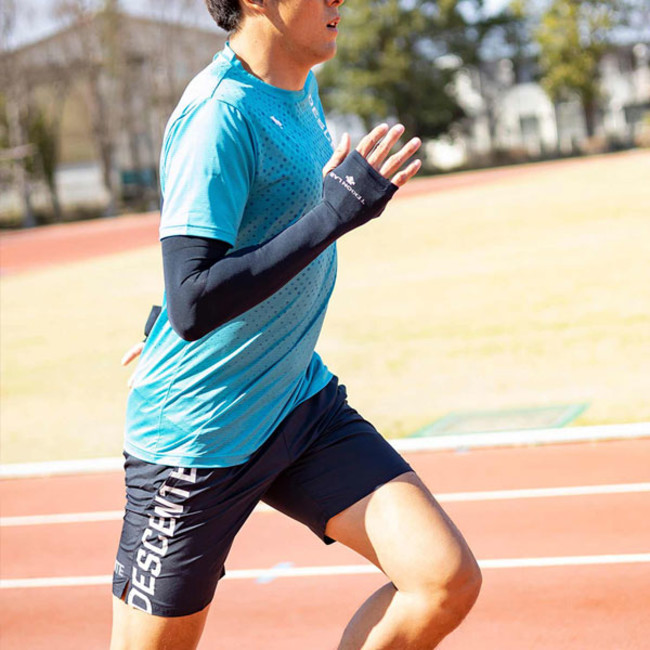 汗をかきやすい肘裏はメッシュ構造になっているので、運動中でもストレスなく着用できます。