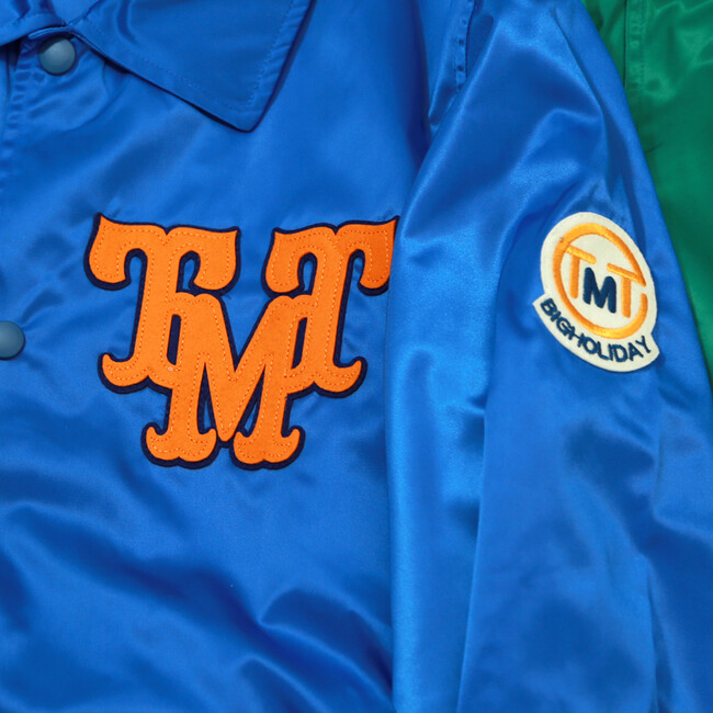 TMTオリジナルコラボでは、MLB(メジャーリーグベースボール)のコーチジャケットをベースに、1980年代~90年代にアメリカ国内で絶大な人気を誇っていたナイロンサテン地を再現。