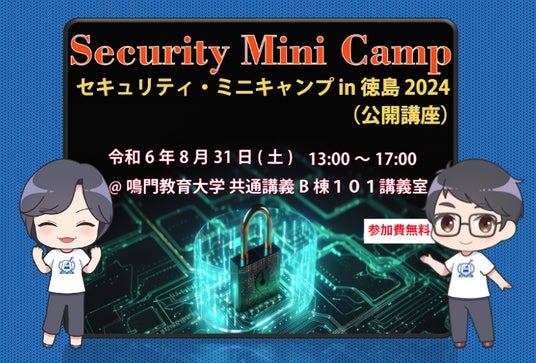 2024年8月31日(土)現地開催にて 鳴門教育大学と一般社団法人セキュリティ・キャンプ協議会が主催するセキュリティ・ミニキャンプ in 徳島 2024の公開講座の参加者を募集いたします。