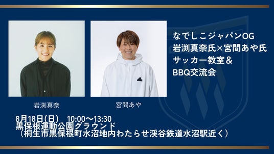 株式会社ザスパ(本社 群馬県前橋市 代表取締役社長 赤堀 洋 以下、ザスパ群馬)では、群馬県東部地域へのサッカーによる地域振興および、群馬県全体の女子スポーツ振興を目指し、株式会社ザスパ群馬レディーススポーツクラブと連携し、2025年度から女子の社会人サッカーチームを立ち上げることを2024年5月に発表いたしました。今回、その発足を記念して、群馬県桐生市で創業し国内外に事業を展開しているたこ焼チェーン「築地銀だこ」を経営する株式会社ホットランド(本社 東京都中央区 代表取締役 佐瀬 守男)がプロデュースする「サウナの森 水沼ヴィレッジ」内の施設にて、元なでしこジャパン(サッカー女子日本代表)で2011FIFA女子ワールドカップ優勝経験をもつ岩渕真奈さん・宮間あやさんを招待してサッカー教室、BBQ交流会を開催いたします。