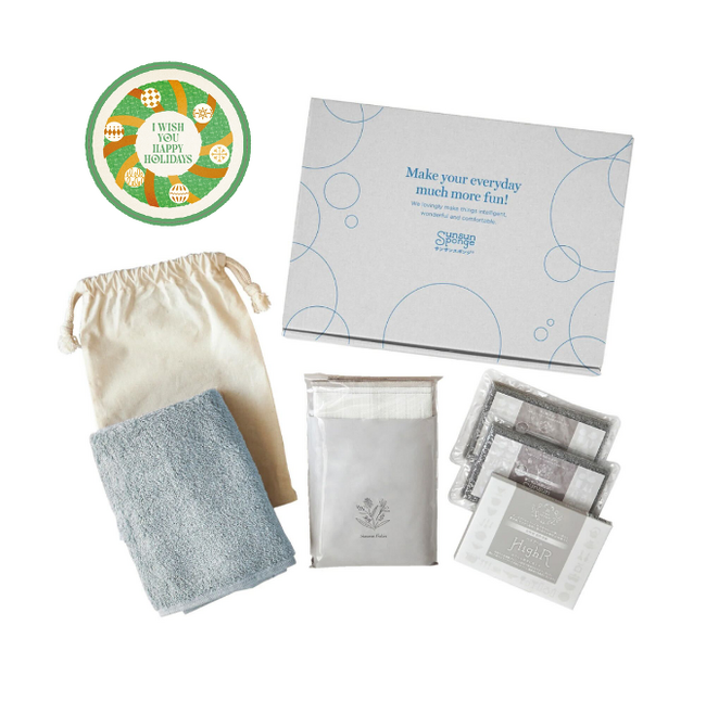 内容:サンサンスポンジ 2個/サンセブンハイアール 100g/サンサンフキン グレー/オリジナルタオル/オリジナルギフトボックス入り