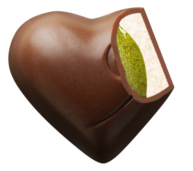 ・甘く上品な香りのシャインマスカットソースとバニラホイップをミルクチョコレートで包んだハート型のセンターインチョコレート