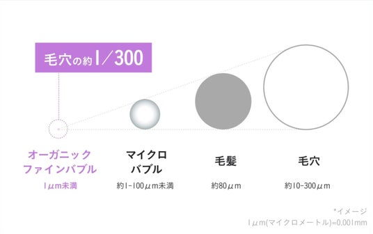 「オーガニックファインバブル」は、毛穴の約1/300サイズという超微細な泡。