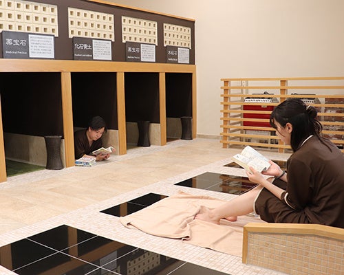 有料の岩盤浴エリアでは、広々とした室内で玄武石・木紋石・ブラックゲルマなどの岩盤浴が楽しめます。「ロウリュウサウナ」では、大人気のロウリュウイベントを毎日開催。大きなタオルで熱波を送る「熱波師」のパフォーマンスがイベントを楽しく盛り上げます。岩盤浴エリアには、岩盤浴利用者だけが使える専用ラウンジがあり、ホテルのラウンジのようなおしゃれな雰囲気の中で寛ぐことができます。