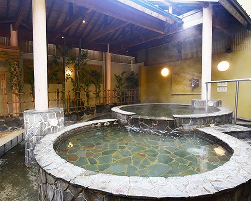 黒湯の温泉は「ナトリウム-炭酸水素塩冷鉱泉」で神経痛・筋肉痛・打ち身・冷え性などに効能があり、美肌の湯ともいわれています。「さっぱり湯」「しっとり湯」の2種類の浴室を完備しており、天然温泉に炭酸を加えためずらしい黒湯炭酸泉をはじめ、露天風呂・ミストサウナなどのお風呂とサウナが揃っています。毎週月曜日に男湯と女湯を入れ替えるので両方のお風呂が楽しめます。