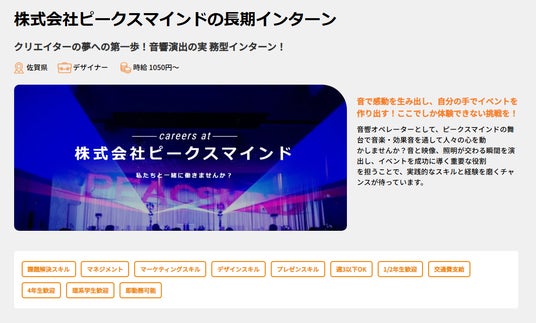 このたび、株式会社SHiROが運営する学生と企業をつなぐ長期インターン求人媒体「ココシロインターン」にて、株式会社ピークスマインドが新たに企画職およびデザイナー職のインターンシップ求人を掲載いたしましたことをお知らせいたします。