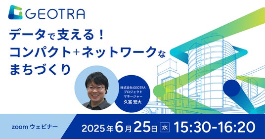株式会社GEOTRA(本社:東京都千代田区、代表取締役社長:陣内 寛大、以下GEOTRA)は、2025年6月25日(水)にオンラインセミナー『データで支える!コンパクト+ネットワークなまちづくり』を開催いたします。