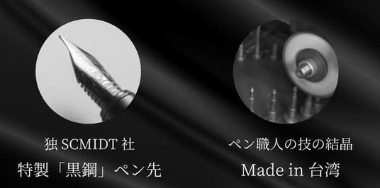 スクリュー型ノブを回してインク充填。握りやすくて書き心地抜群!潜水艦万年筆就航。