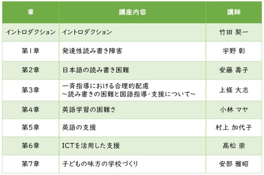 【読み書き困難指導・支援講座】では、読み書きが困難とはどういうことか、指導・支援にあたっての心がまえ、困っている児童生徒への気づき、アセスメント、ICT の使用、英語の指導・支援など、すぐに現場にいかせる学習支援方法・実践例を学べます。