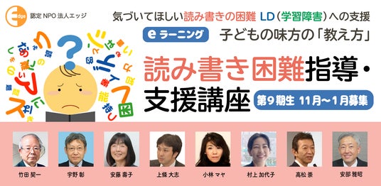 東京都港区の認定NPO法人エッジ(会長藤堂栄子)は【読み書き困難指導・支援講座】第9期(11月~1月)を開講。読み書きに困難がある子どもの理解と支援・指導を専門家によるeラーニングで学べます。