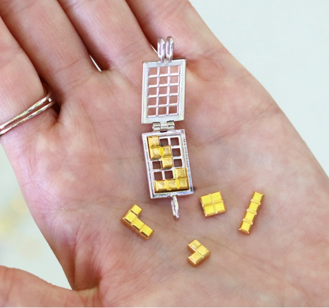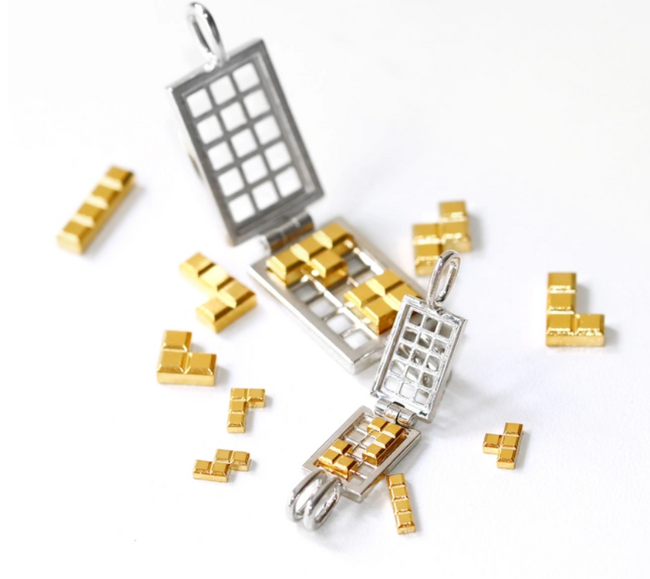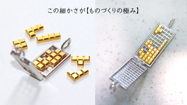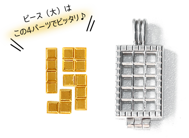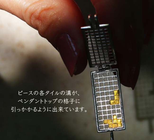 まるでゲーム画面のようなペンダントトップ。好きな場所にピースをはめられる「大人の遊び心」