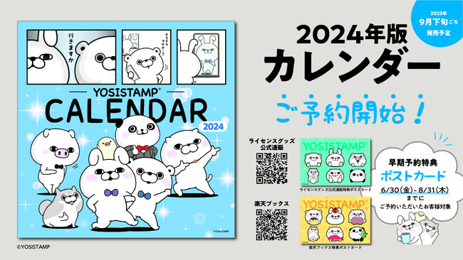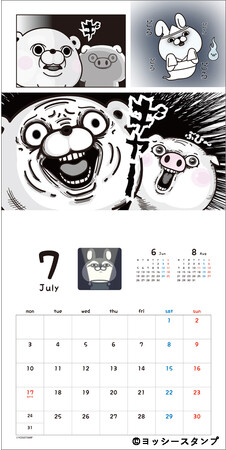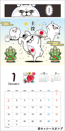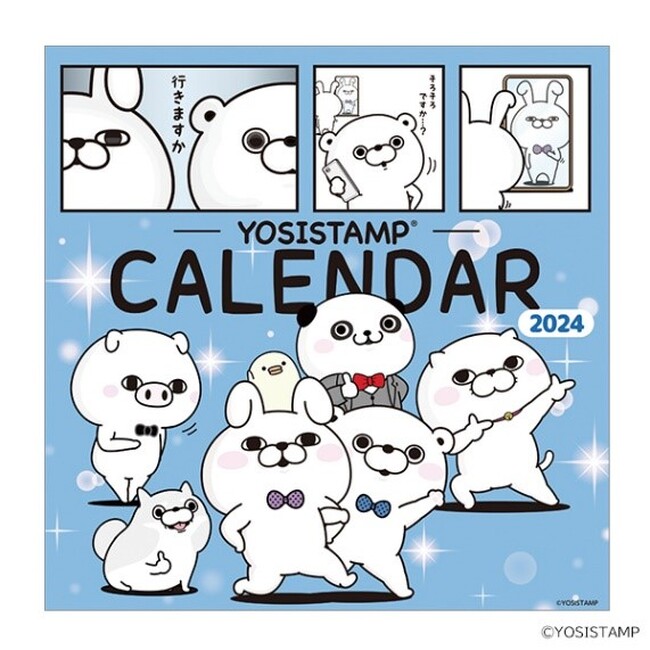 毎年大人気のヨッシースタンプのカレンダーが今年も発売!うさぎ100%、くま100%をはじめとしたおなじみのキャラクターがコミックスタイルで描かれています。