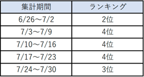 楽天ブックスのカレンダーアニメ・キャラクター部門 週間ランキングにて、5週連続ベスト5にランクイン!(6/26~7/30集計)