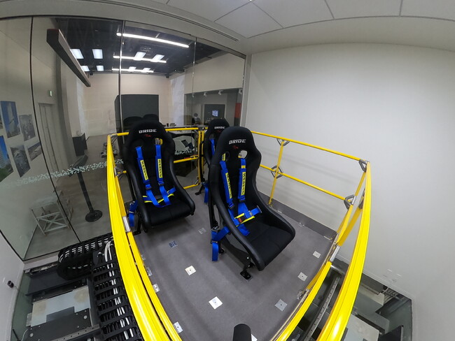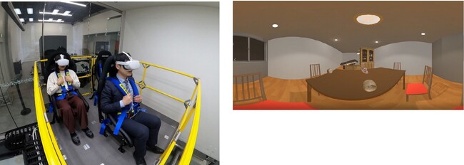 「トライデッカー」は、最大3名が同時に地震動を体感できるため、体験結果の共有が図りやすくなります。また、搭乗者がヘッドマウントディスプレイを装着することで360°VR動画を見ながら地震動を体感することも可能です。これにより、視覚効果を高めた、より没入感のある体感ができます。