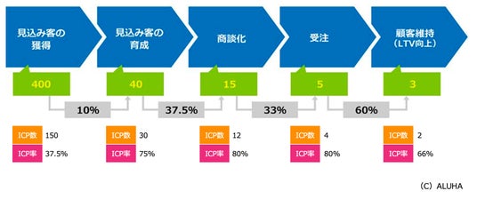 これにより、企業は自社のリソースや売上状況に応じて、施策のバランスを見ながら、マーケティング施策や営業施策を効率よく展開できます。また、営業部門とICPの定義を共有することで、より営業部門との連携も行いやすくなります。