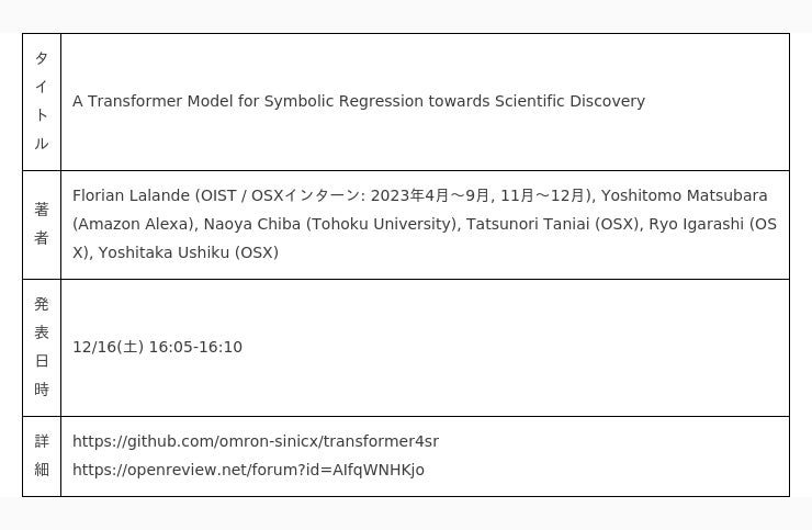 <NeurIPS 2023 AI for Science Workshopに採択された論文> ※発表日時は現地時間です