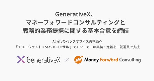 株式会社GenerativeX(本社:東京都千代田区、代表取締役CEO:荒木 れい、以下「当社」)は、株式会社マネーフォワードのグループ会社であるマネーフォワードコンサルティング株式会社と戦略的業務提携に関する基本合意書を締結しました。
