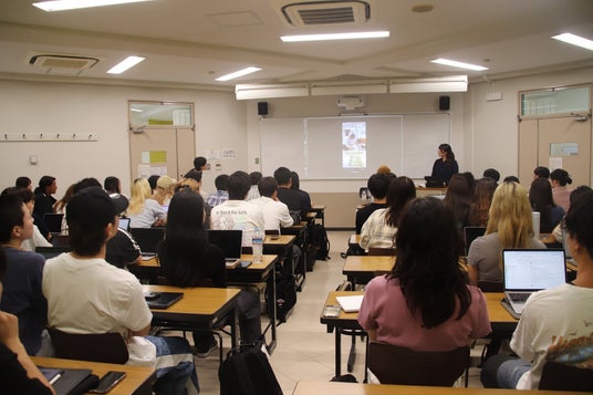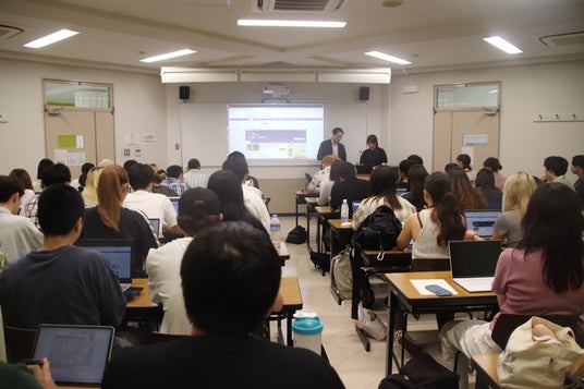 1回目となる9月19日(木)は、教室内は満席に近く、当初予定していた人数を超える学生が参加。中には単位がなくても講義だけ受けたい、という学生もいるほど。