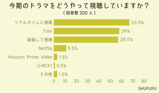 今期ドラマの視聴方法に関しては1位「リアルタイムに視聴(33.5%)」、2位「TVer(29%)」、3位「録画して視聴(28.5%)」でした。有料の配信サイトを利用している方は少数になりました。