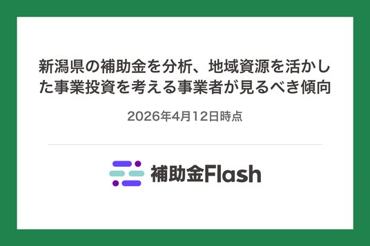 そこで株式会社Franca AI(本社:東京都中央区)が運営する支援制度検索ポータル「補助金フラッシュ」(https://hojokin-kensaku.jp/)は、2026/04/12時点で新潟県で利用可能な補助金・支援制度90件を集計分析しました。
